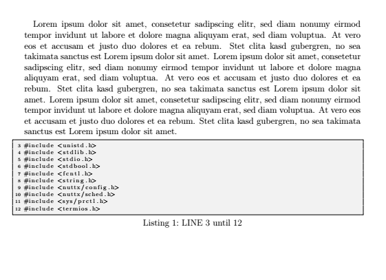 Im Header, unter Geometry, habe ich die Textbreite für A4 seitlich um jeweils 2.5cm verkürzt, was bedeutet, dass ich 16cm Textbreite habe. Nun beginnt aber mein Listing einige mm weiter links als der Text und endet richtig bei 16cm ( eingestellt durch \linewidth=16cm).
