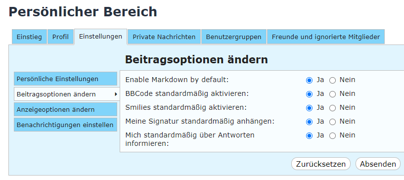 • oder "Markdown abschalten" klicken und klassische bbCode Tags verwenden