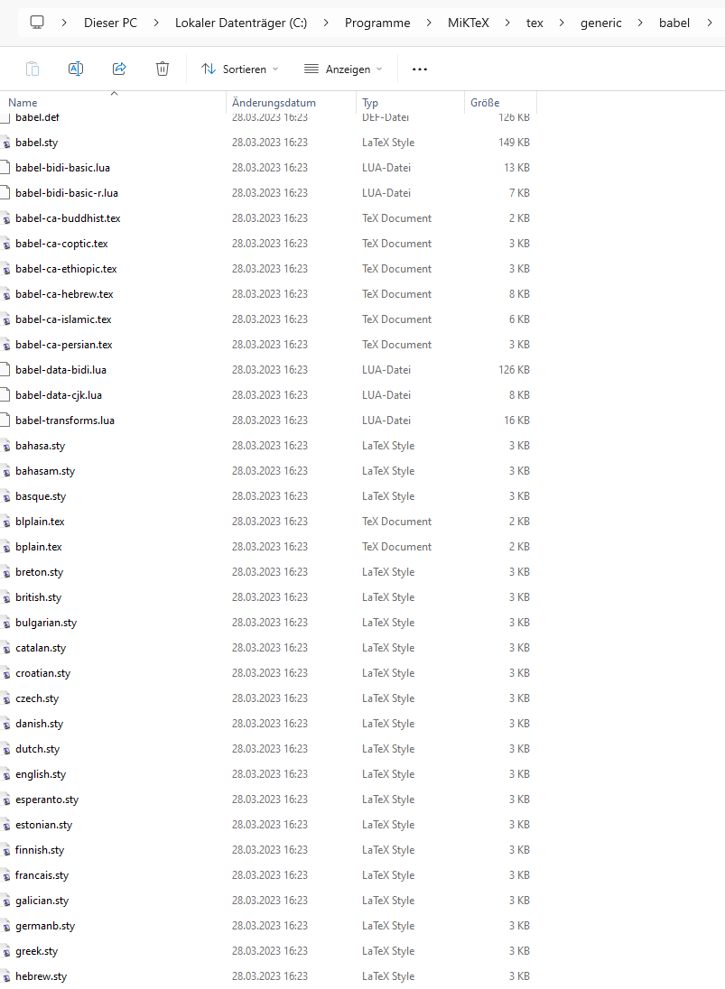 vielleicht hab ich das missverständlich erklärt, aber es ist anzunehmen, dass ich keine Pakete nachinstallieren kann (Firmenrechner, Firewall, interne Richtlinien, etc). Jetzt scheint babel ja bereits installiert zu sein (siehe Screenshots vom Ordner). Die Frage wäre jetzt welchen Befehl ich einzugeben habe, damit ich die deutsche Rechtschreibung erhalte. Denn [ngerman] funktioniert leider nicht.