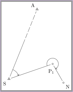 \pic[draw=black,<-,angle radius=4mm]{angle = N--P1--S};
