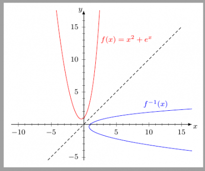 \addplot[variable=\t, blue]({t^2+exp(t)},{t}) node[pos=0.18, anchor=south]{$f^{-1}(x)$};