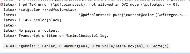 Beim Compilieren bekomme ich immer diese eine Fehlermeldung. Ich habe jetzt schon zwei Tage sämtliche Foren durchsucht und nichts gefunden. Ich verstehe auch nicht, was pdfcolorstack sein soll... Vor drei Jahren hat das Dokument noch ohne Porbleme genau mit dem Header funktioniert und jetzt wo ich es mal wieder benötige nicht mehr...