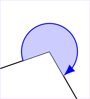 \pic[draw=blue, <-, angle radius=4mm, fill=blue!20]{angle = N--P1--S};
