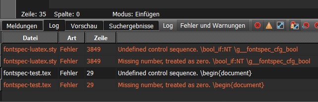 Mir war 'fontspec-luatex' bis jetzt völlig unbekannt. Das eigentliche Problem könnte die Version sein. Hier funktioniert es auch nicht. Auf Overleaf dagegen schon. Ich habe dort das Beispiel mal laufen lassen und '\listfiles' direkt vor '\documentclass' eingefügt. In der Protokoll-Datei entsteht dann fast am Ende eine Liste aller verwendeten externen Dateien mit Angabe der Paket-Versionen. Vergleiche mal die Version von dort (s. u. Zeile 33) mit der Version von 'fontspec-luatex' in deinem TeX-System.