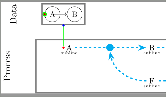 In dem Minimalbeispiel gibt es also zwei Blöcke, Data und Process. Beide sollen nun links-bündig ausgerichtet sein. Dazu hatte ich hier im Forum und bei StackExchange gesucht und diverse Tipps erhalten, die ich auch umgesetzt habe. Demnach sollte es ausreichend sein, die beiden Blöcke per anchor=west auszurichten. Wobei es wichtig ist, dass anchor nach left=of bzw. below=of kommt, weil diese den anchor selber setzen.