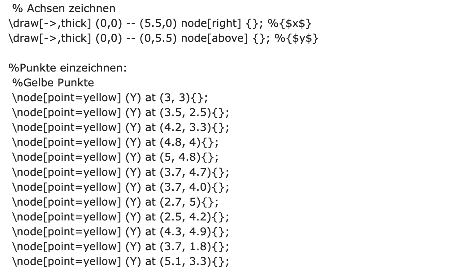 Mein aktueller Code ist unten angefügt. Das ist jetzt nicht sonderlich schön bisher und vielleicht kann mir ja jemand auch sagen, wie man das vielleicht schöner lösen kann. Super wäre wenn bei der Underfitting Grafik die Gerade noch stärker zur Geltung kommt. Weiterhin fehlen noch die Funktionen für die zweite und dritte Grafik, wobei beim Overfitting jeder Punkt richtig klassifiziert werden soll. Kann mir außerdem jemand sagen, wie ich die drei Grafiken zwar nebeneinander habe, aber dafür linksbündig mit der ersten startend?