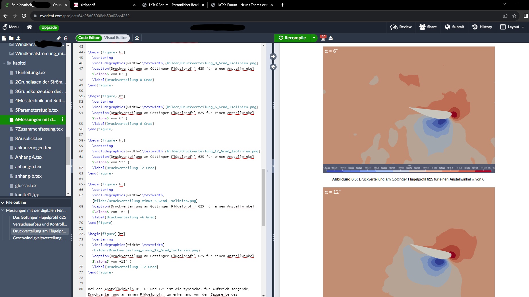 N.B: die kleine rote 67 oben in dem Screenshot bedeutet, dass die Kompilation Fehler hat. Die musst du korrigieren! Auch wenn eine PDF erzeugt hat: ein Fehler deutet auf ein ernsthaftes Problem hin und du kannst dich nicht darauf verlassen, dass alle Inhalte da sind und korrekt sind.