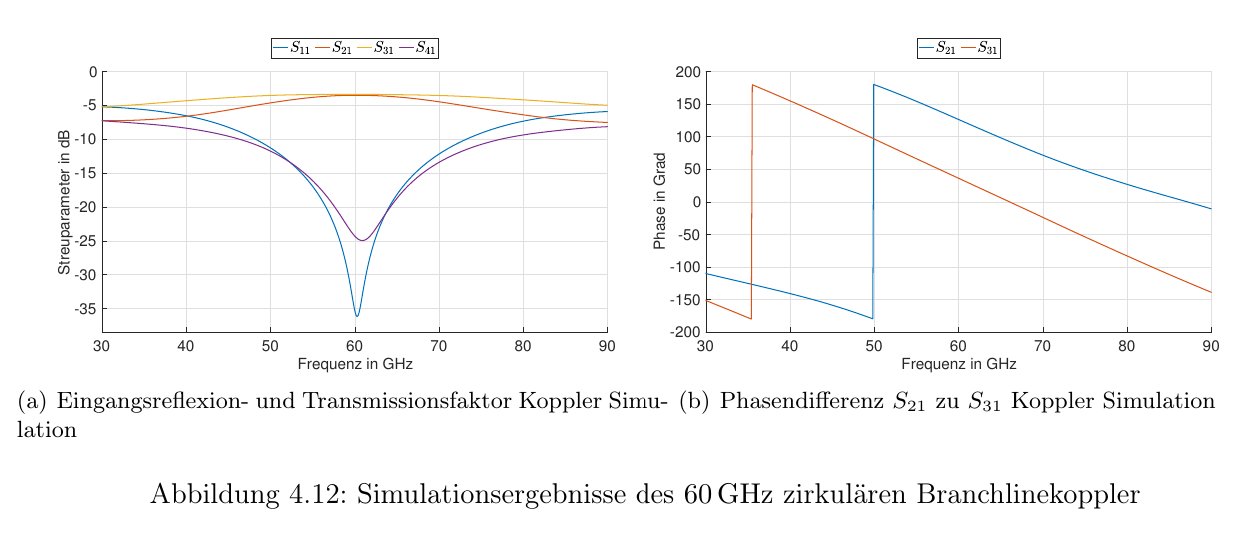 \caption{Simulationsergebnisse des \SI{80}{GHz} zirkulären Branchlinekoppler}