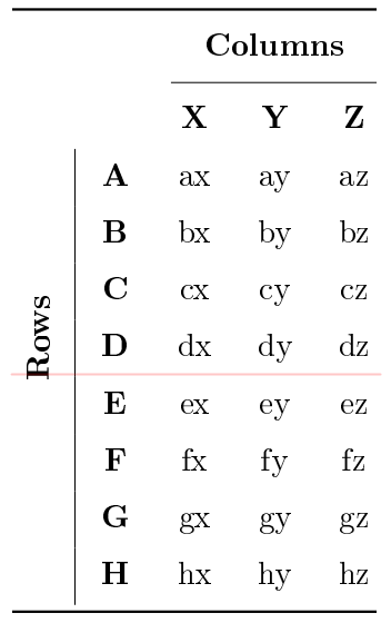 \multirow{8}{*}[-\dp\strutbox]{\rotatebox[origin=r]{90}{\thead{Rows}}}