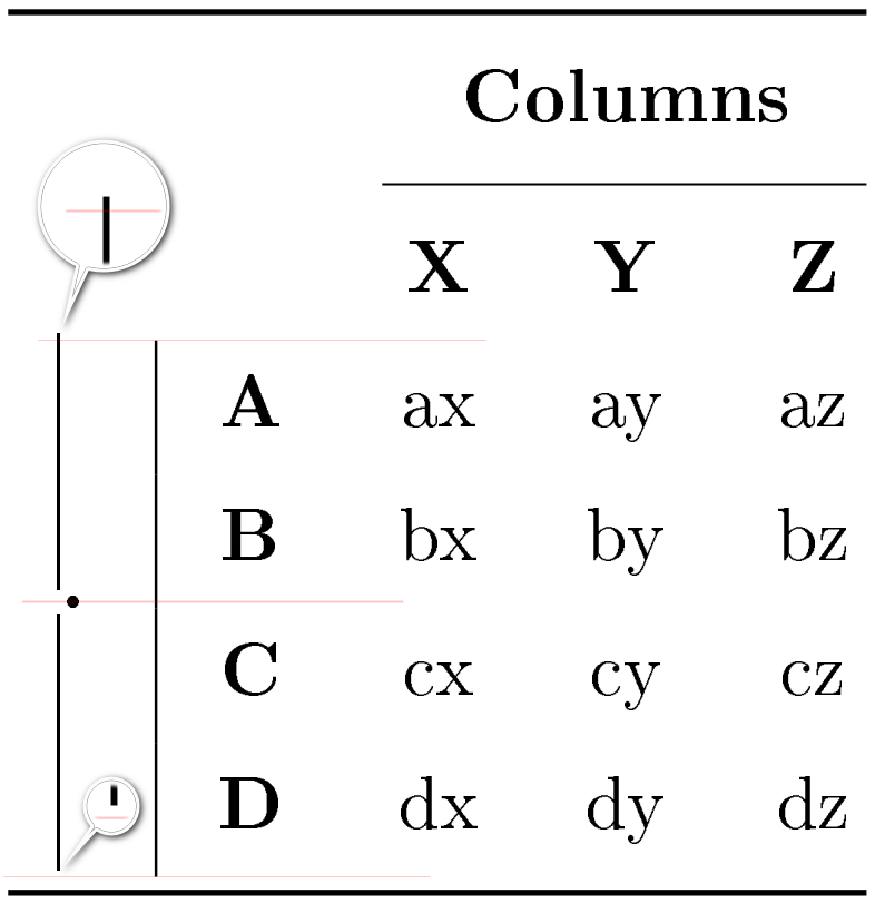 \path (firstrow) -- node [rotate=90] {\thead{Rows}} (lastrow);