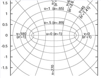 Das Koordinatensystem bestehe aus Ellipsen und Hyperbeln und ist orthogonal.