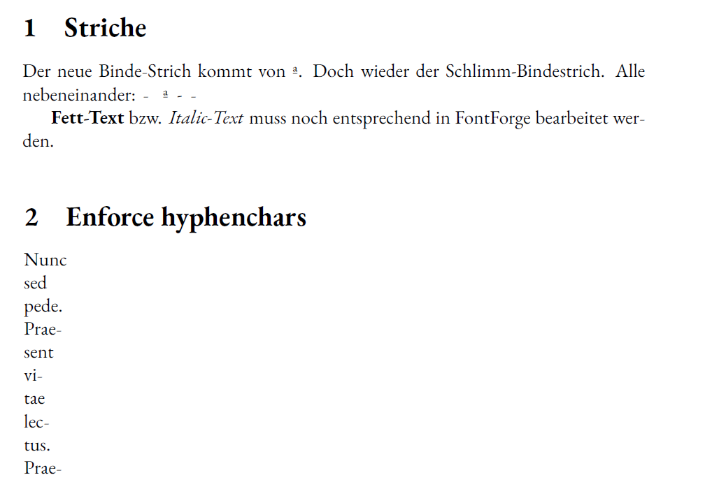ich nutze die Schriftart EB Garamond. Das Einzige, was mich schon seit langer Zeit stört, ist das Bindestrich-Zeichen, das leicht schräg verläuft. Ist es möglich, das Bindestrich-Zeichen von EB Garamond durch das Zeichen aus einer anderen Schriftart wie z. B. Latin Modern oder Times zu ersetzen? Ich habe schon mit »\hyphenchar« experimentiert, aber keine passende Lösung gefunden.