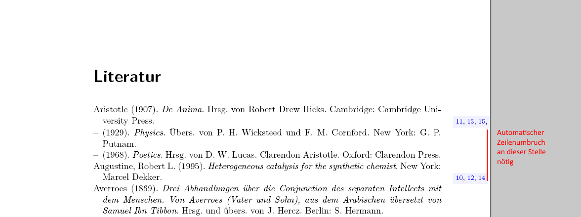 \renewbibmacro*{pageref}{% Wie muss diese Definition verändert werden, damit am Seitenrand ein % automatischer Zeilenumbruch erfolgt?